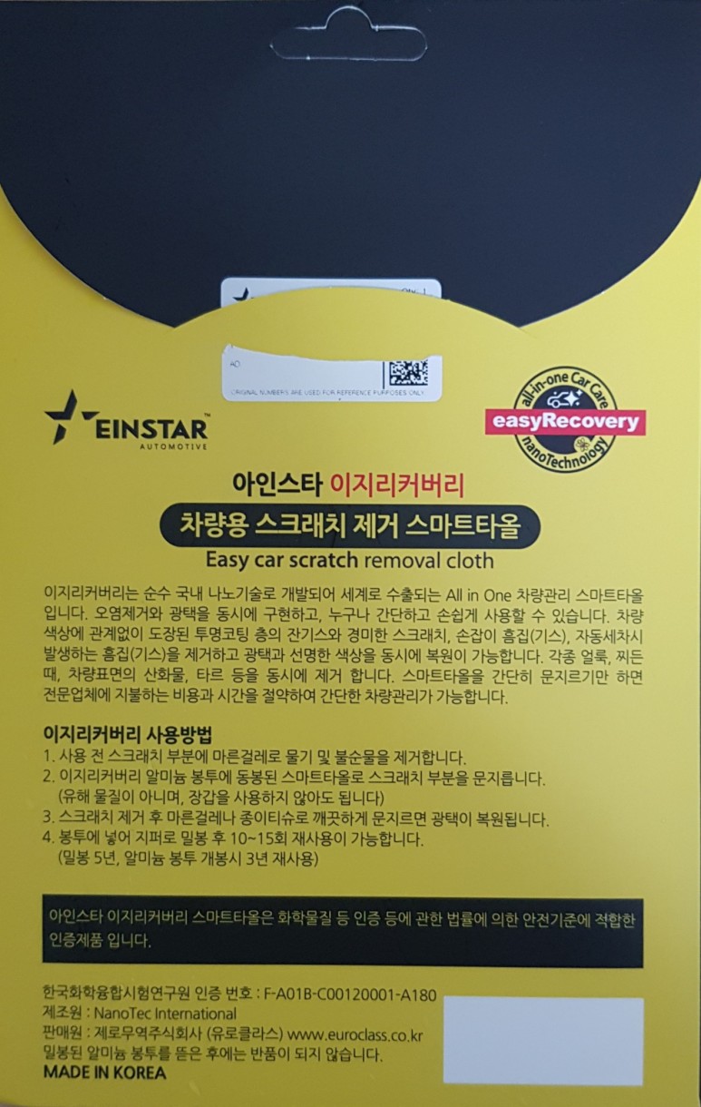 (정식 명칭은 아인스타 이지 리커버리 차량용 스크래치 제거 스마트 타올)