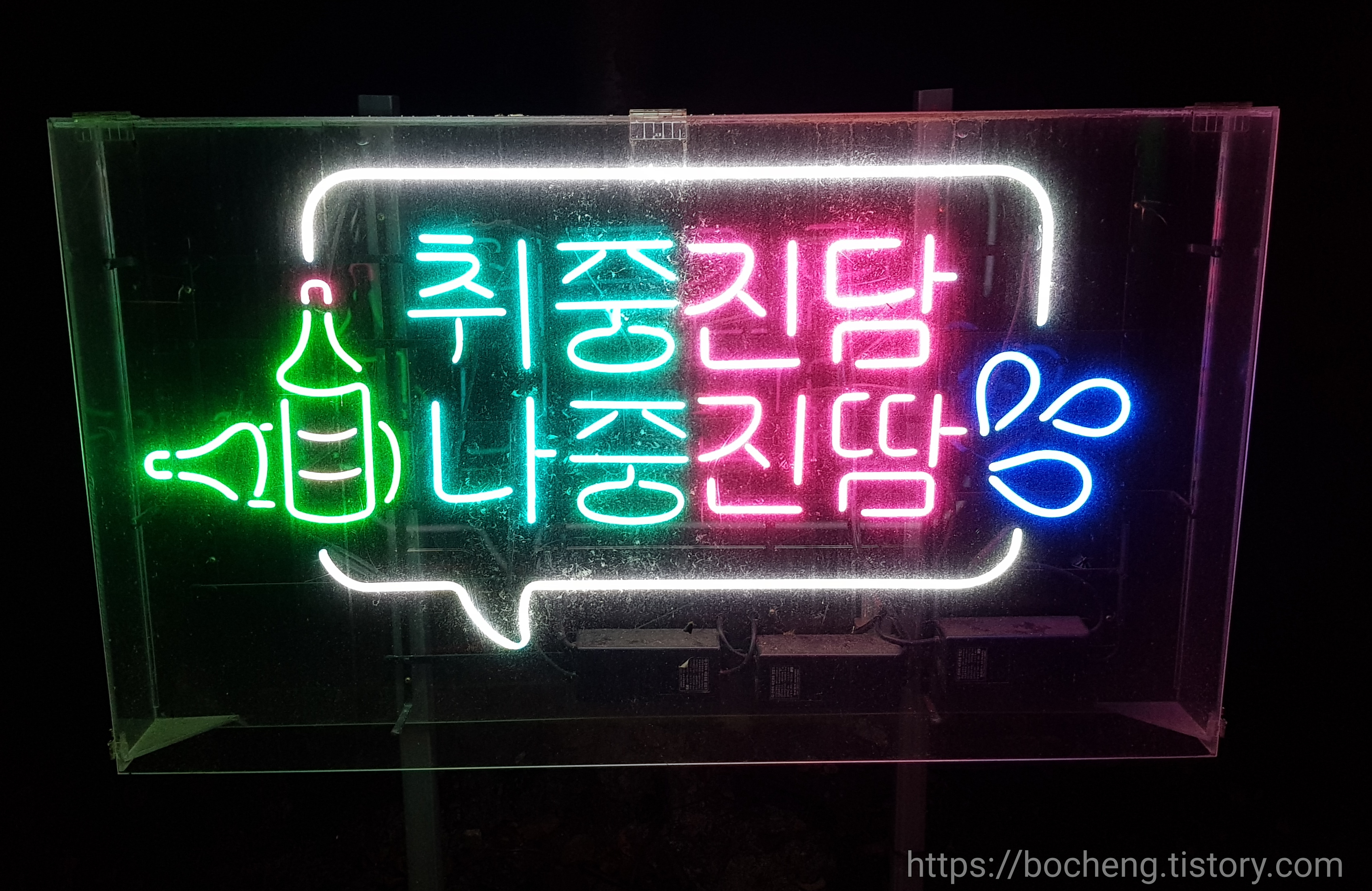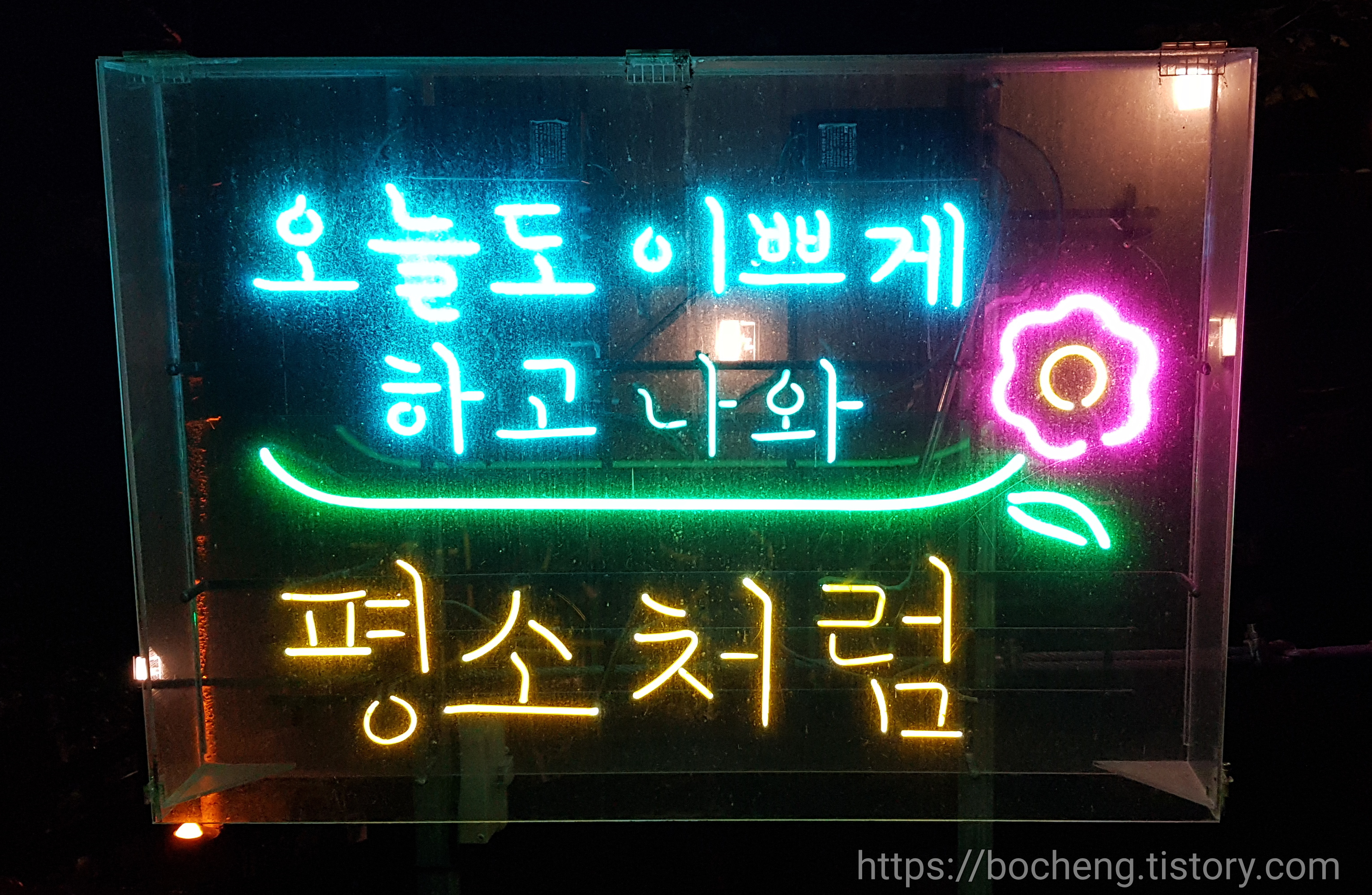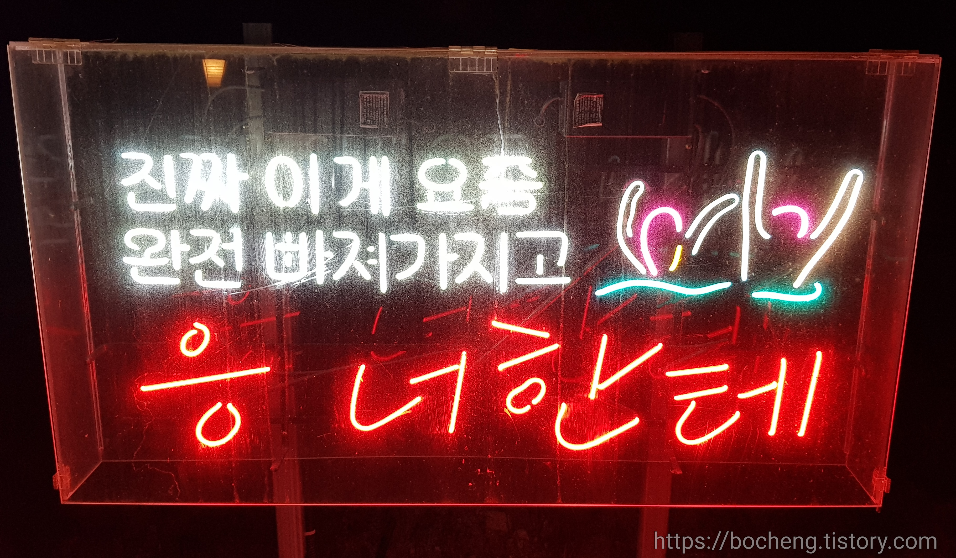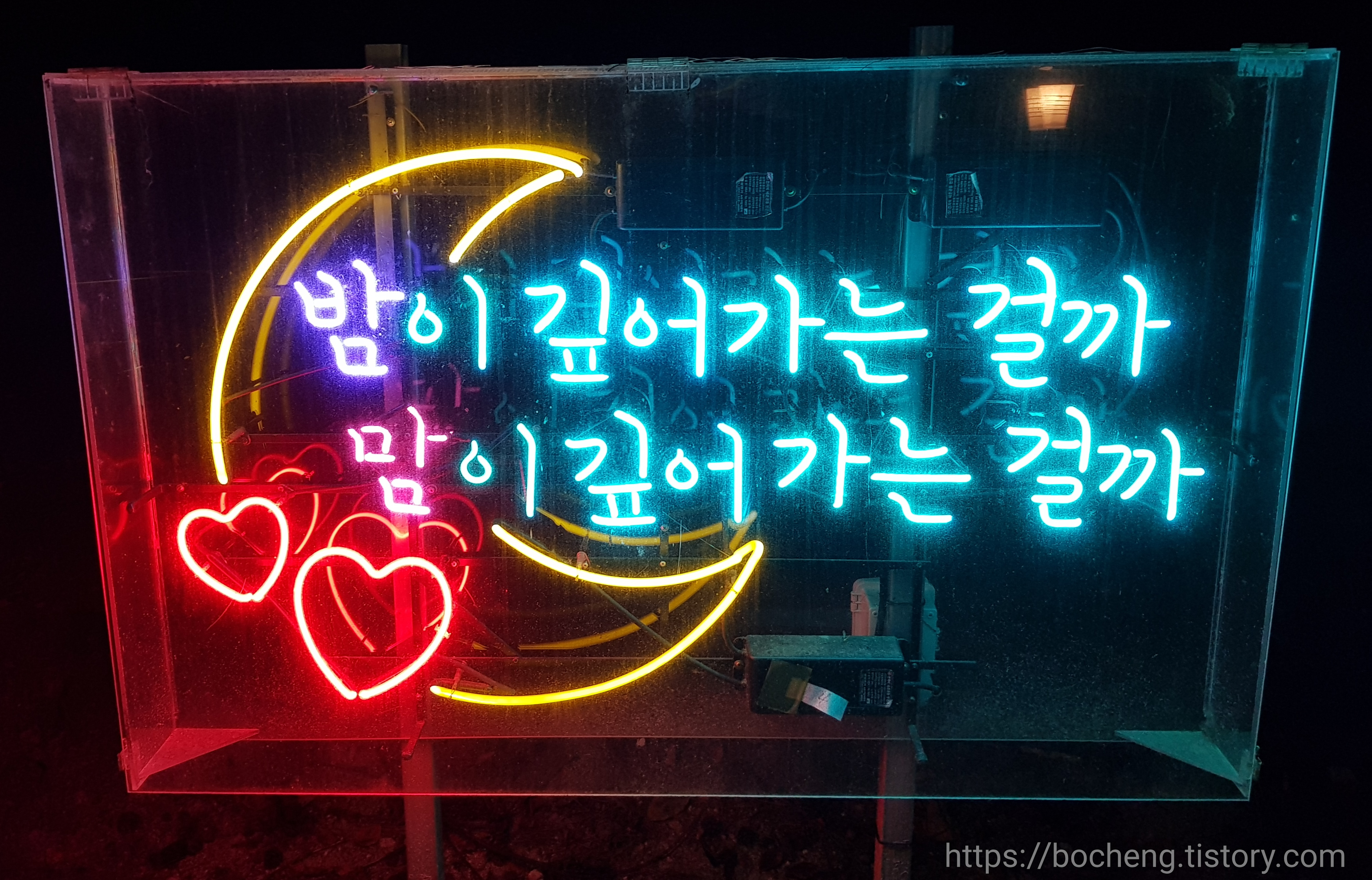 하상욱 시인의 간결하면서도 위트있는 시들을 네온사인로드로 꾸며놨더군요.