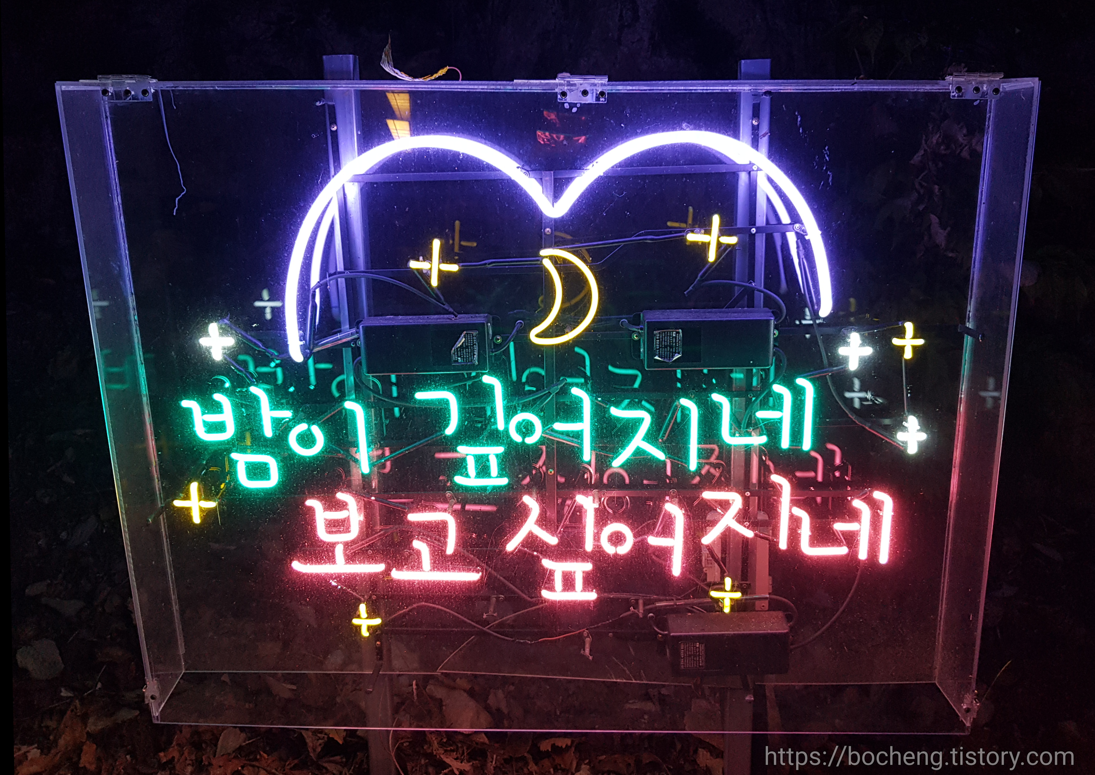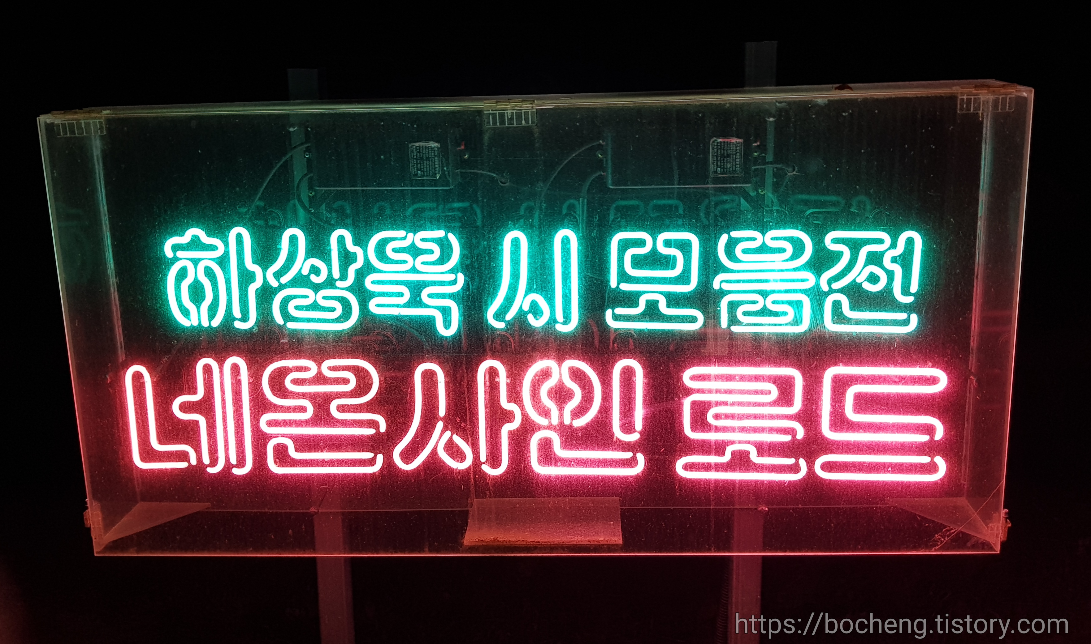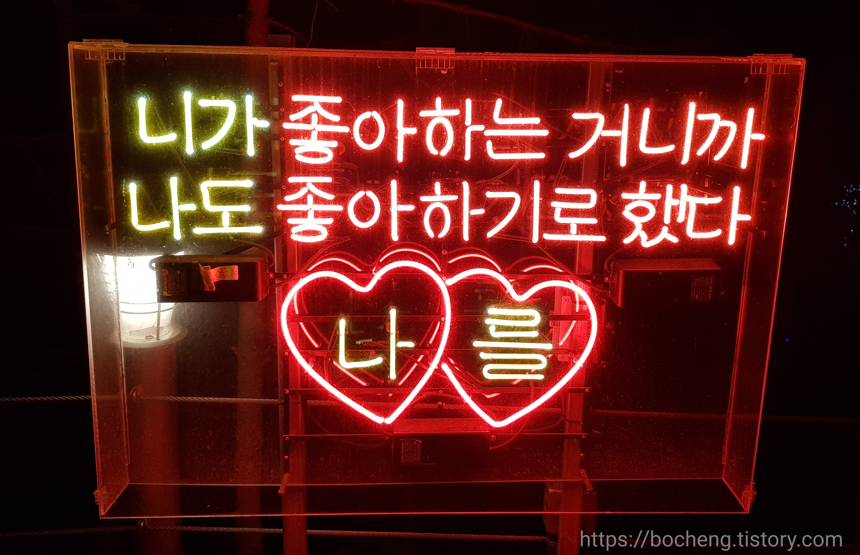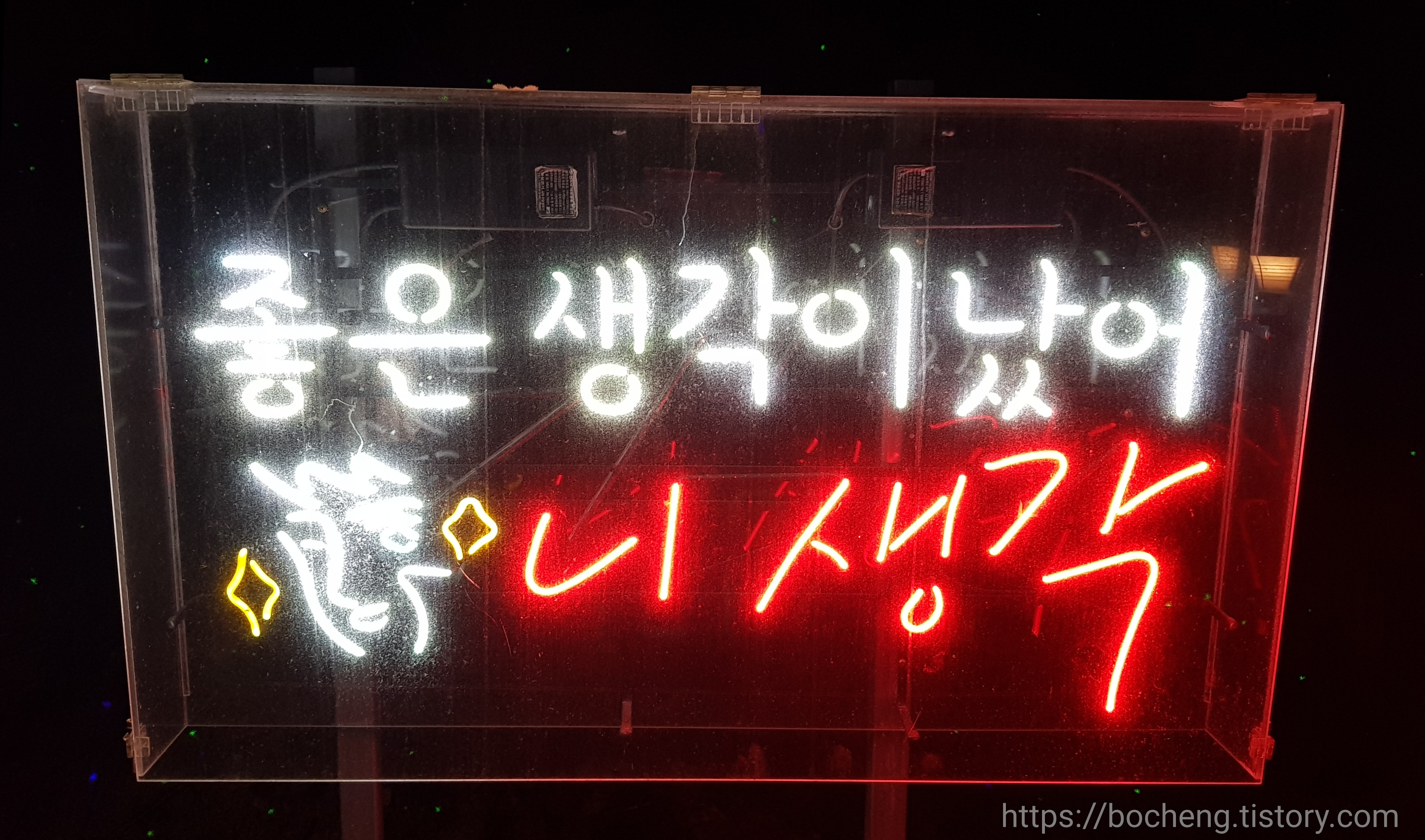 하상욱 시인의 간결하면서도 위트있는 시들을 네온사인로드로 꾸며놨더군요.