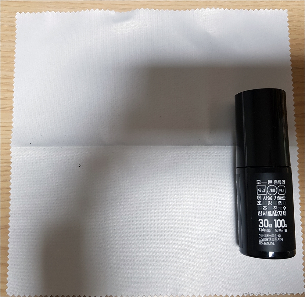 효과가 있는지 확인을 위해 일단 안경 앞뒤로 스프레이 뿌려주고 동봉된 극세 사천으로 잘 닦아준 뒤,