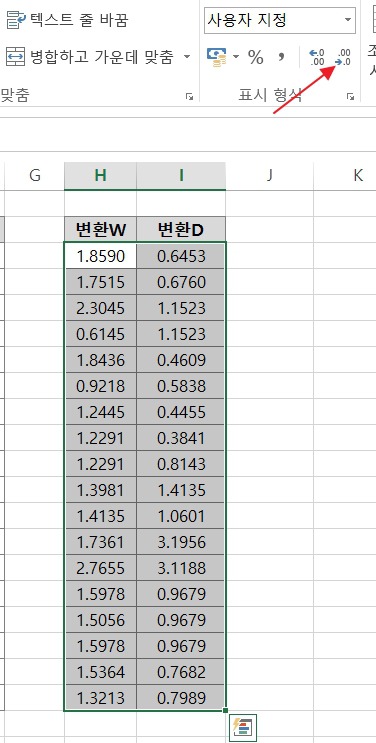 참고로 표시 형식에서 화살표 시한 부분을 눌러주면 소수점 자리를 조절 가능합니다.