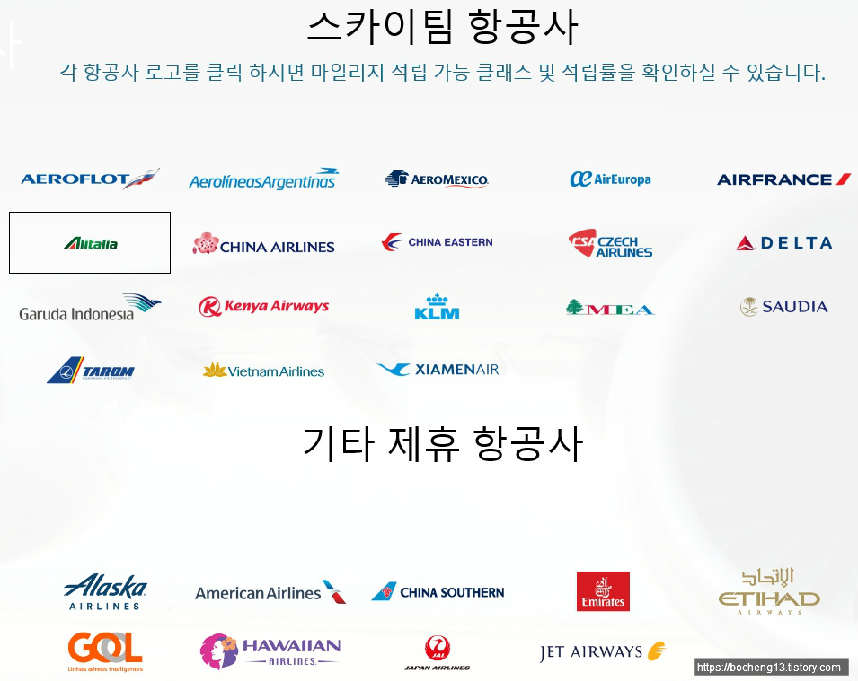 (클릭 후 중간 정도까지 내려오시면 '제휴항공사'항목에서 보실 수 있습니다)