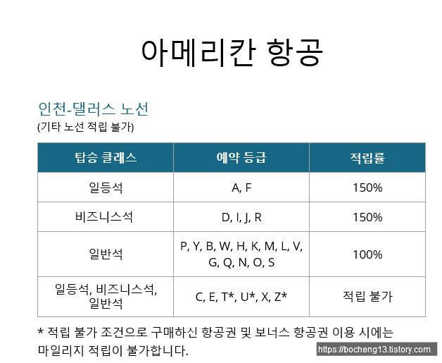 이번 비행편인 아메리칸 항공을 클릭해보니 아래처럼 인천-댈러스 노선만 적립 가능하다고 나오네요..