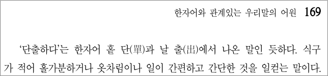 어원을 보시면 홑단(單)과 날 출(出)에서 나온 말인 듯하다는데요,