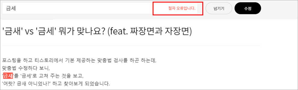 포스팅을 하고 티스토리에서 기본 제공하는 맞춤법 검사를 하곤 하는데,