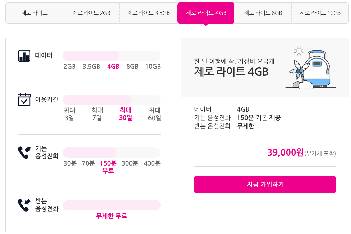 a) 심플유심 : 4G(LTE), 통화 무제한