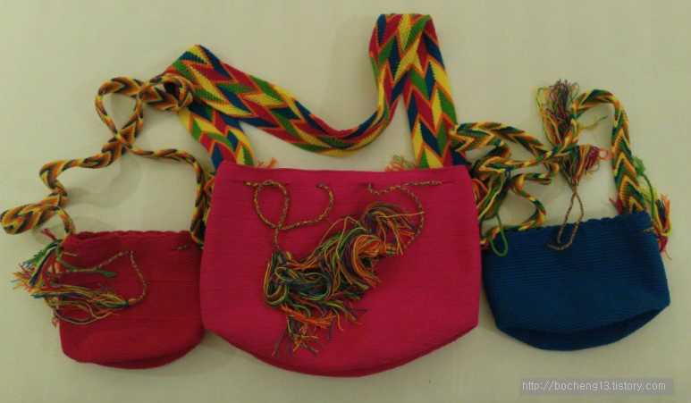 콜롬비아 원주민들이 한 땀 한 땀 수작업으로 만드는 가방이라고 하고 화려한 색상과 무늬로 인해 한국에서도 인기가 많아 비싼 가격에 팔리고 있다고 하네요.