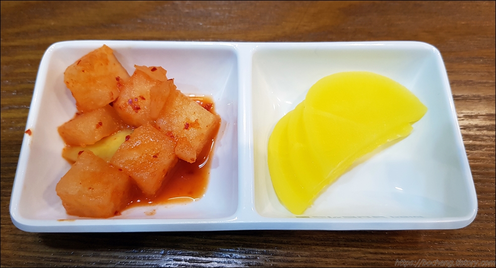 먼저 스프와 단무지, 깍두기가 나오고요.