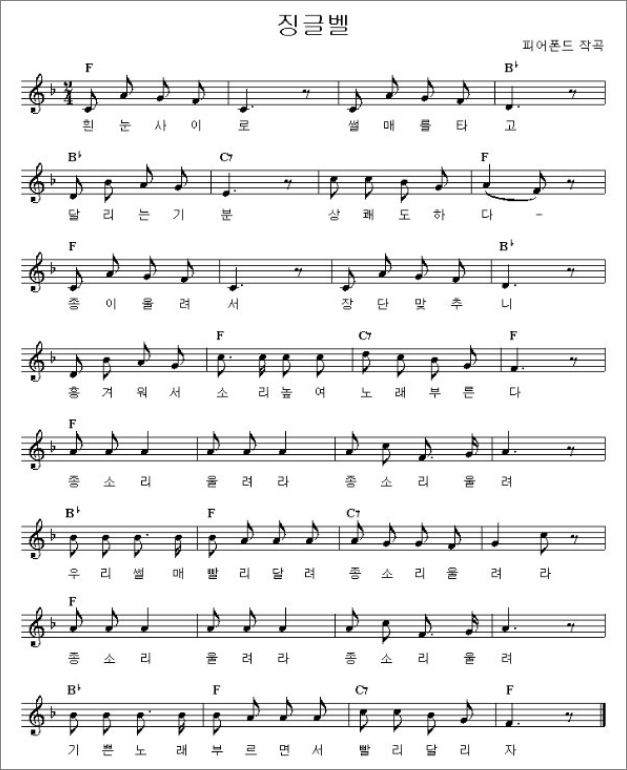 아주 어릴 때 동네 뒷산에서 쌀푸대자루를 타고 썰매를 탔던 아련한 기억을 떠올려주는 징글벨 악보/가사/동영상입니다.
