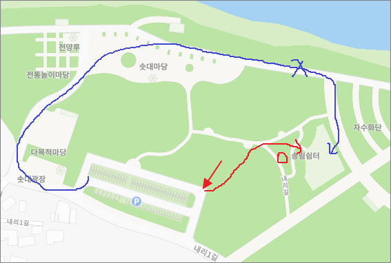 처음에는 파란색의 경로로 가다가 놀이터를 발견했는데,