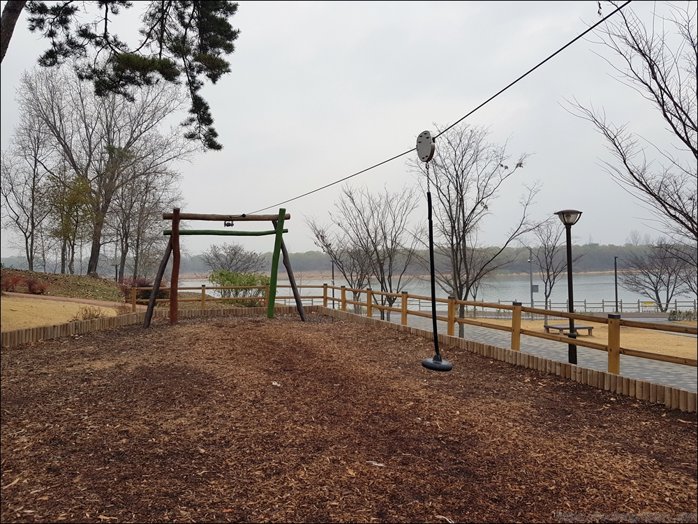 아무도 없던 놀이터에서 아이들 실컷 짚라인부터 탔고요,