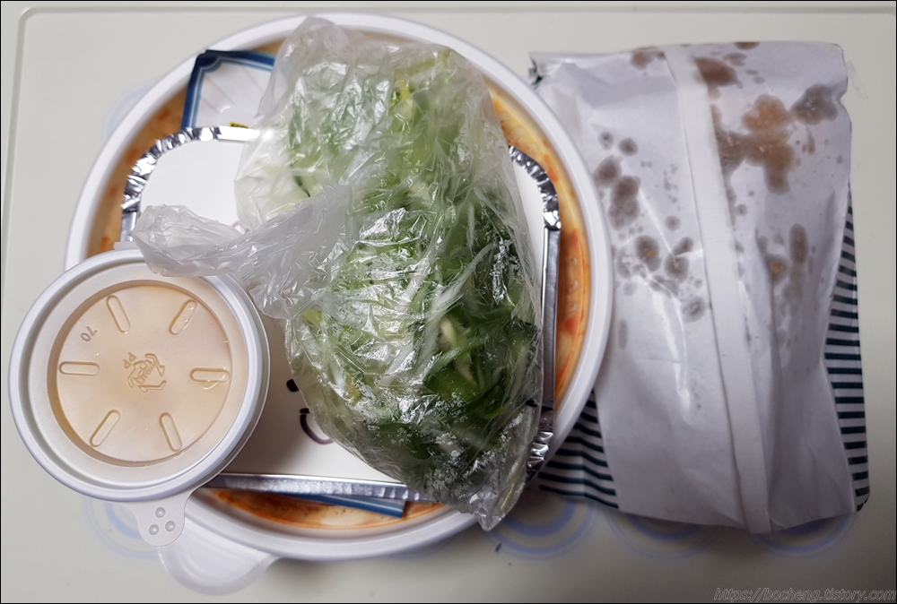 예상 소요시간, 주문접수, 음식 준비 중, 현재 이동 중인 배달 위치까지 쿠팡이츠 앱에서 확인이 가능하여 언제 오려나 기다리지 않아도 되니 세상 참 좋아졌네..라는 생각을 하고 있는 와중에 도착한 배달 구성품입니다.